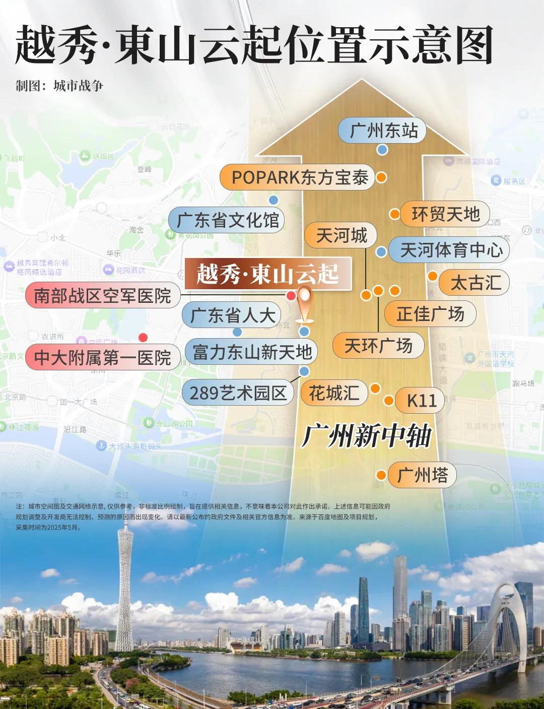 本项目推广名为【越秀·東山云起】,核准地名为【东启轩】。开发商:【广州越浩房地产开发有限公司】;制作时间:【2025年6月】。本宣传资料仅为要约邀请,所有文字、数据、图片等仅供参考,不作为开发商的销售承诺及要约内容,买卖双方权利义务均以实际签订的商品房买卖合同约定为准。本宣传资料对周边环境、政府规划、商业配套、教育资源、地铁、城轨和高速等信息截止于2025年5月的情况,有关介绍仅为提供相关信息,并不作为开发商的销售承诺和要约内容,前述信息可能因政府规划调整及开发商无法控制、预测的原因而出现变化,请以最新公布的政府文件及相关官方信息为准。开发商保留对宣传资料更新、修改的权利,敬请留意最新宣传资料,在法律允许范围内,开发商对宣传资料内容作出解释(或)补充。