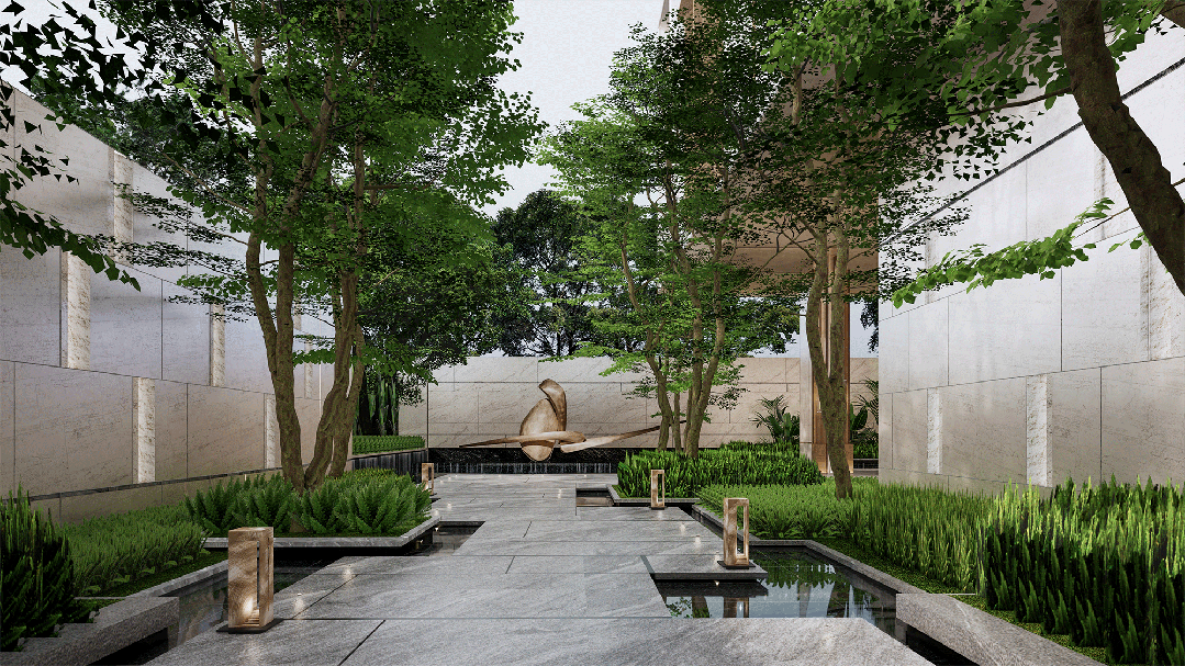 另外,项目还规划了一个隐奢酒店式园林,打造精致丰富的生活聚场,这个设计为单栋奢宅增添了生活情绪