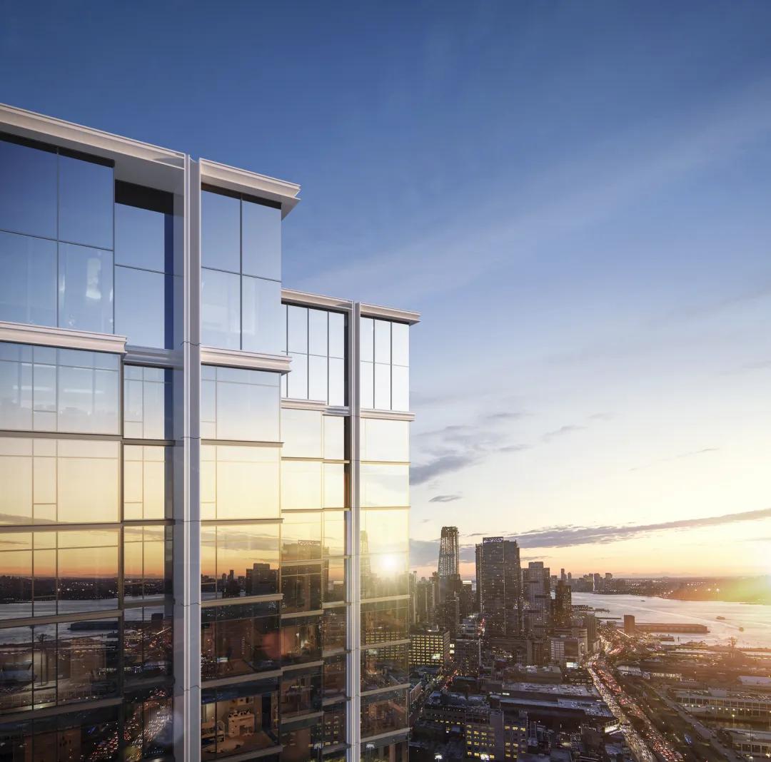 在外立面设计上,融合国际地标与岭南意象,项目通过通透立面与镂空格栅的组合,呈现出未来感的张力;青铜色叶片与石材框架,构成典雅的三段式立面,致敬东山文脉底蕴,低调又不失气韵。