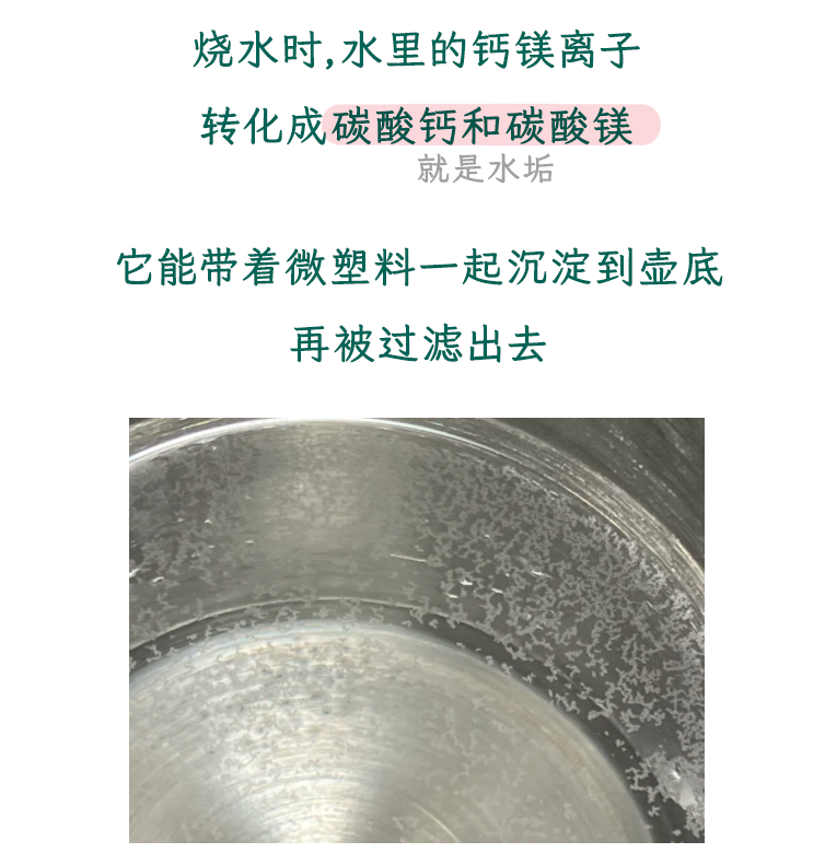 水垢,是水里的钙镁离子和碱度在烧水过程中产生的碳酸钙和氢氧化镁。水里存在很多矿物质,含量越高,水的硬度越大,即常说的“硬水”。当水的硬度高于约 200mg/L 时,烧水时就会产生水垢。温度越高,水垢越多!